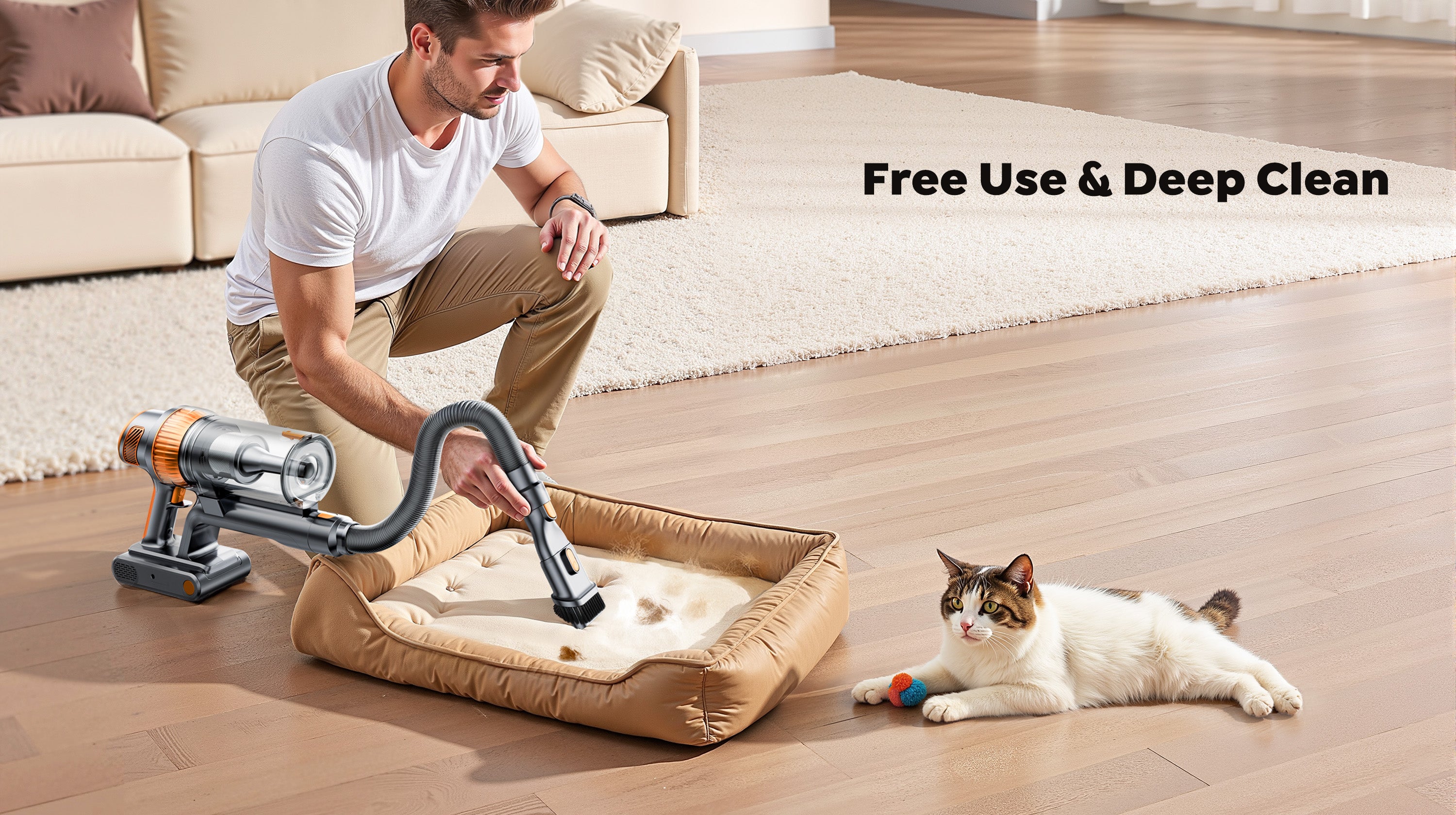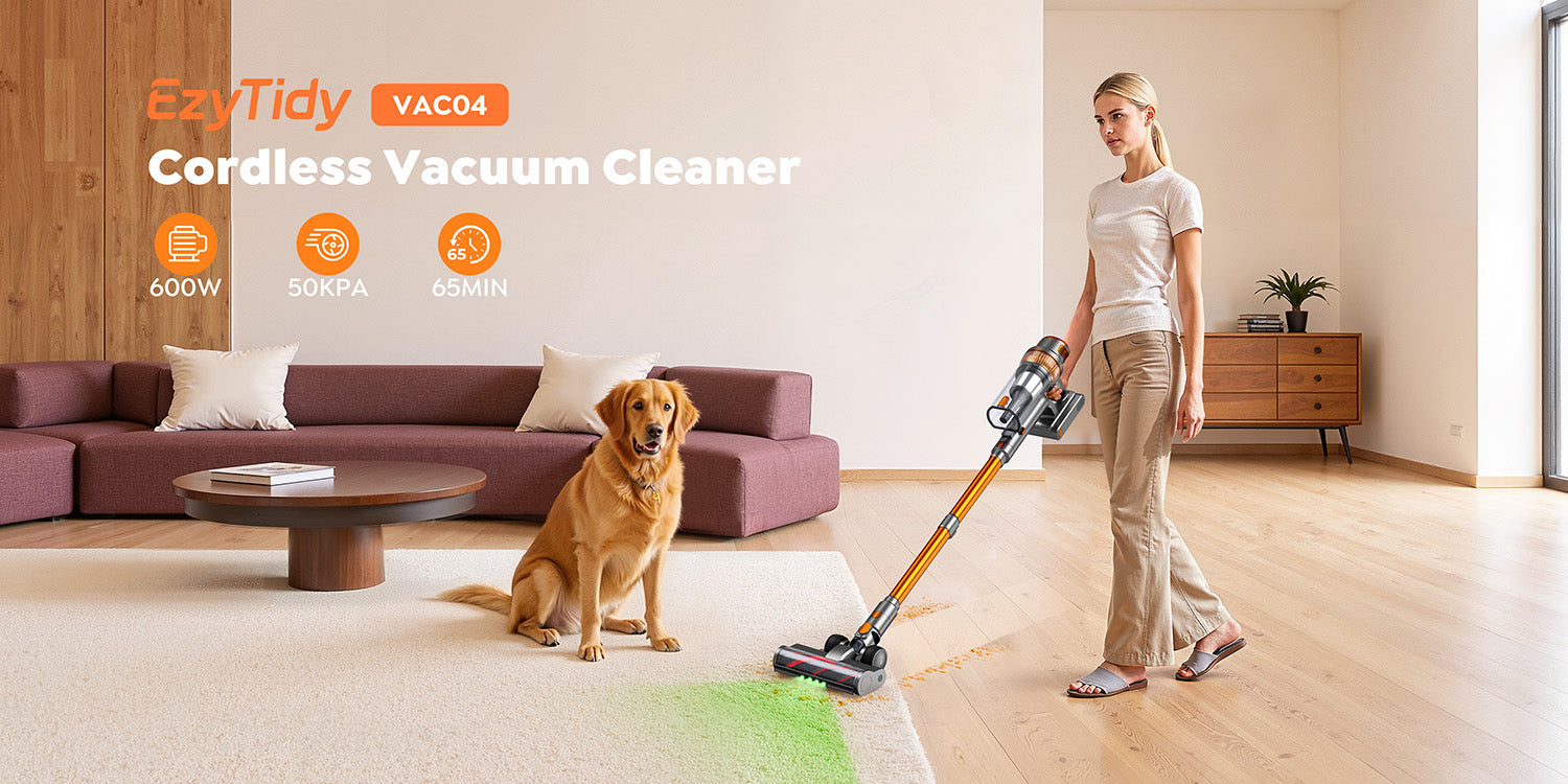 ✨【Upgraded 600W 50KPA Powerful Suction】The VAC04 Cordless Vacuum Cleaner is equipped with an upgraded 600W motor that delivers 50KPA powerful suction.Easily clean deep dirt and debris on various floors in your home.